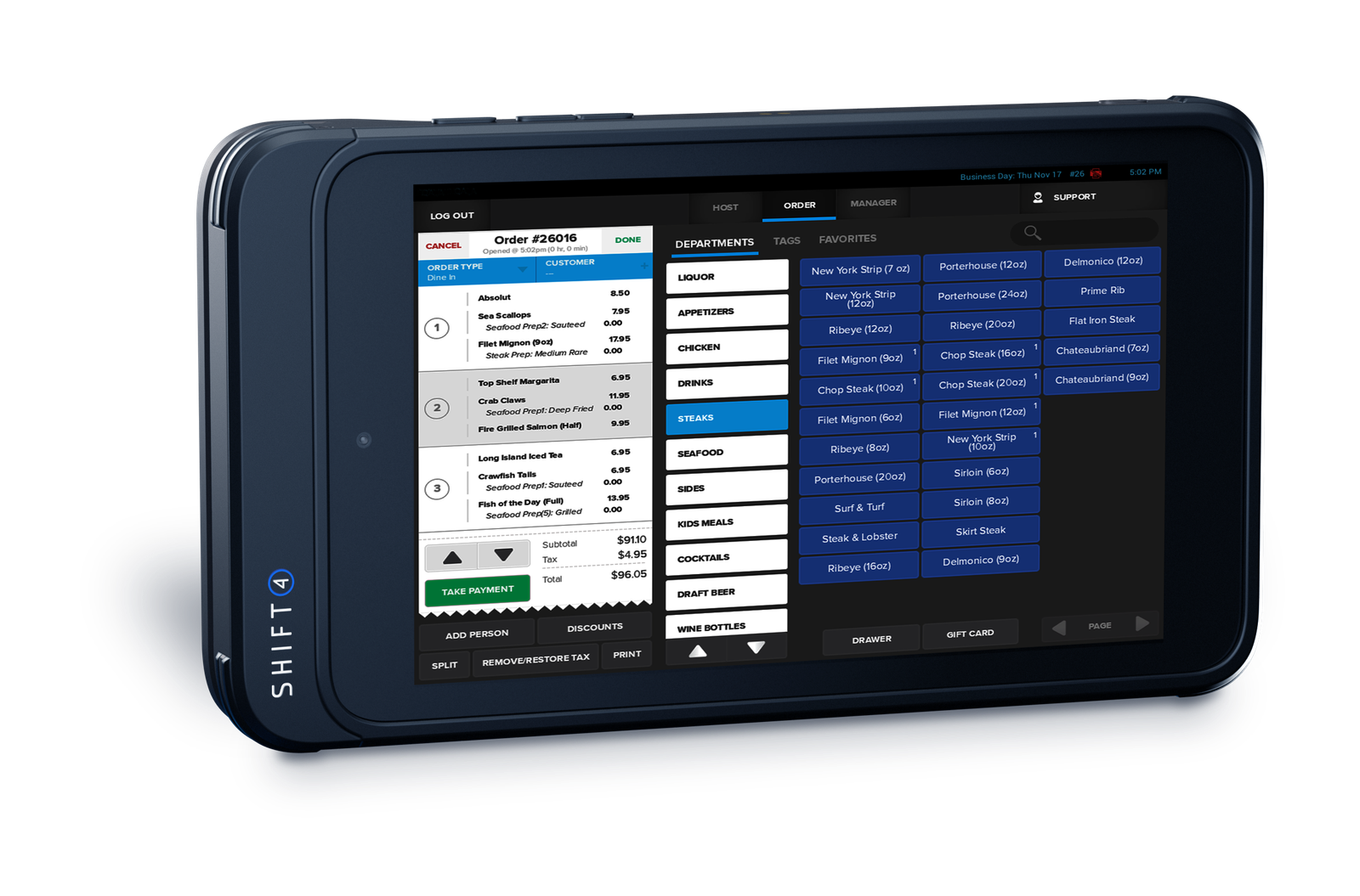 A device that accepts payments and takes orders anywhere at the table or drive out delivery
